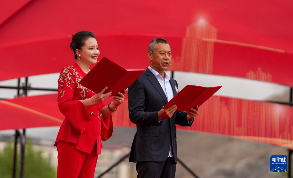 5月25日,王喆(左)和次仁央宗為觀眾演唱歌曲。新華社記者 晉美多吉 攝 ??