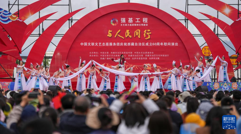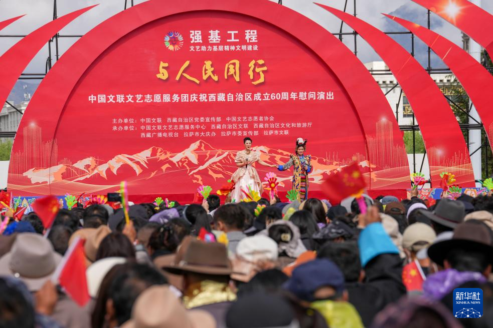 5月25日,由中國(guó)文聯(lián)、西藏自治區(qū)黨委宣傳部、中國(guó)文藝志愿者協(xié)會(huì)主辦的“與人民同行”中國(guó)文聯(lián)文藝志愿服務(wù)團(tuán)慶祝西藏自治區(qū)成立60周年慰問(wèn)演出在位于拉薩的西藏會(huì)展中心廣場(chǎng)舉行。 ??
