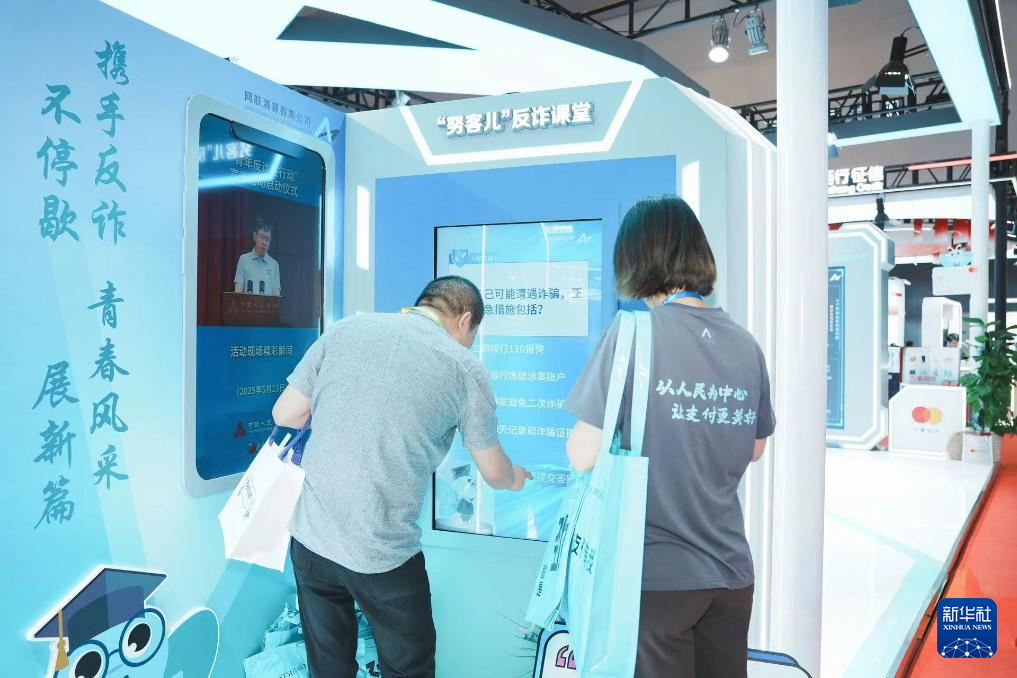 圖為2025中國國際金融展上,參觀者在網(wǎng)聯(lián)清算公司展臺(tái)參加反詐互動(dòng)答題。(網(wǎng)聯(lián)清算公司供圖)