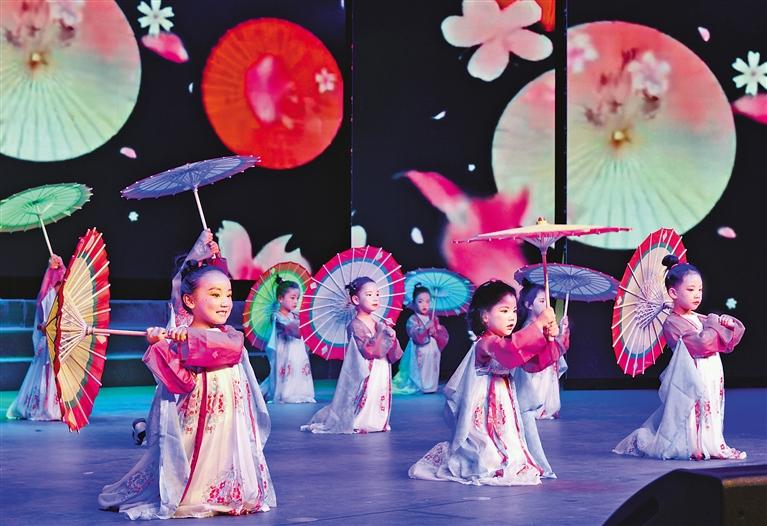 圖為拉薩市實(shí)驗(yàn)幼兒園東城分園中班年級舞蹈隊(duì)表演的舞蹈《百舞驚鴻》。 記者 旦增蘭澤 攝