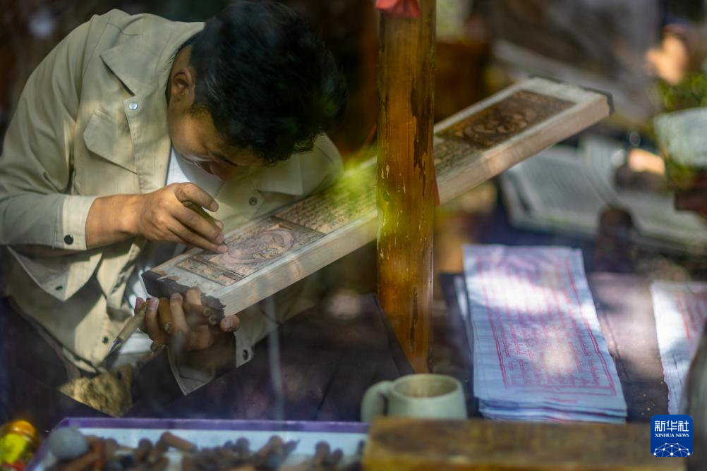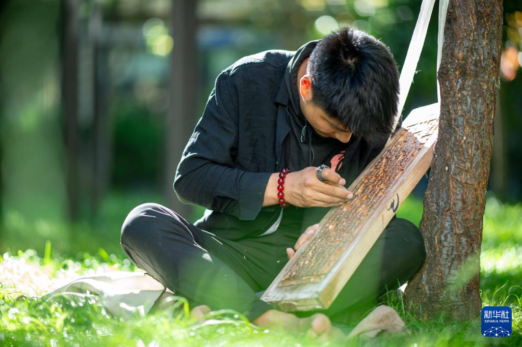 ?8月6日,一名雕刻師在雕刻中。西藏雪巴康雕版印刷制作技藝入選西藏自治區(qū)級(jí)非物質(zhì)文化遺產(chǎn)代表性項(xiàng)目名錄。新華社記者 旦增尼瑪曲珠 攝 ??