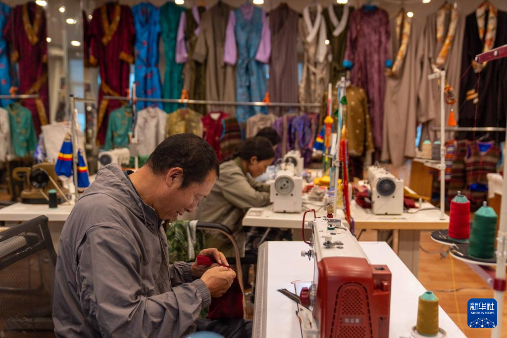 8月6日,服裝師在制作拉薩服飾。拉薩服飾入選西藏自治區(qū)級(jí)非物質(zhì)文化遺產(chǎn)代表性項(xiàng)目名錄。新華社記者 旦增尼瑪曲珠 攝 ??