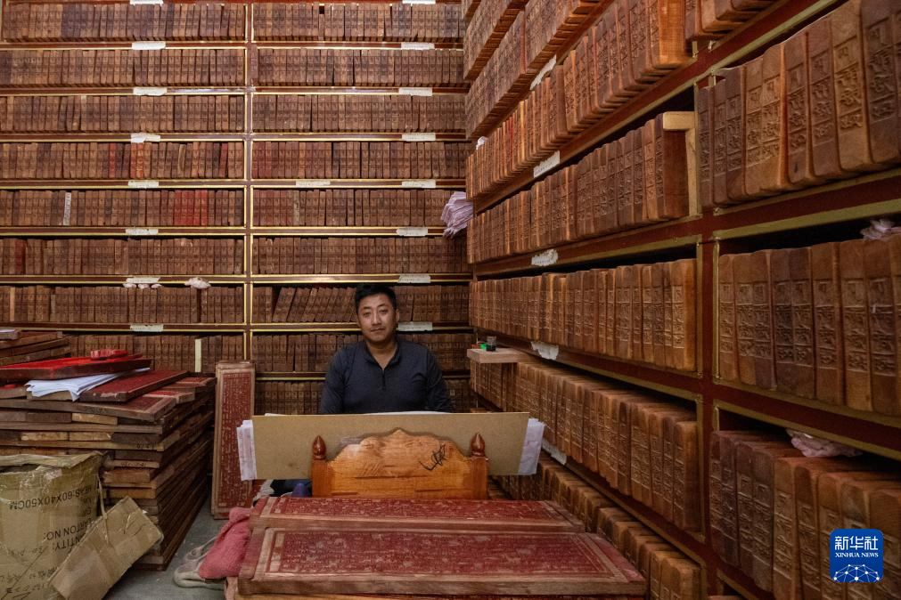 8月6日,一名雕刻師在工作中。西藏雪巴康雕版印刷制作技藝入選西藏自治區(qū)級(jí)非物質(zhì)文化遺產(chǎn)代表性項(xiàng)目名錄。新華社記者 姜帆 攝 ??