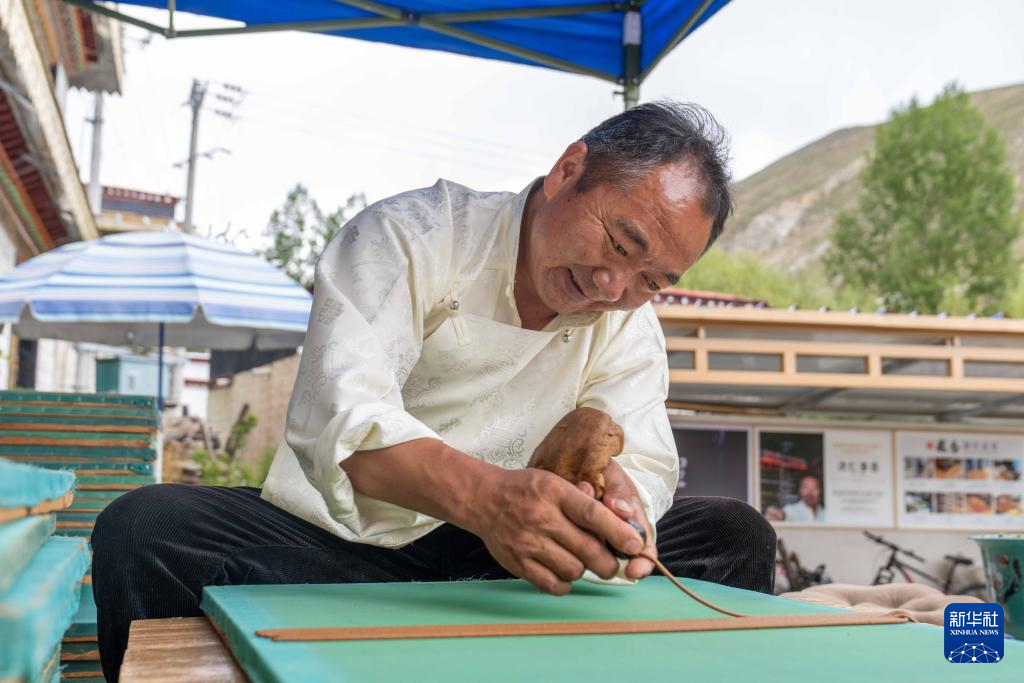 這是一名傳承西藏傳統(tǒng)雕刻修復(fù)技藝的雕刻師(8月6日攝)。西藏傳統(tǒng)雕刻修復(fù)技藝入選西藏自治區(qū)級(jí)非物質(zhì)文化遺產(chǎn)代表性項(xiàng)目名錄。新華社記者 姜帆 攝 ??