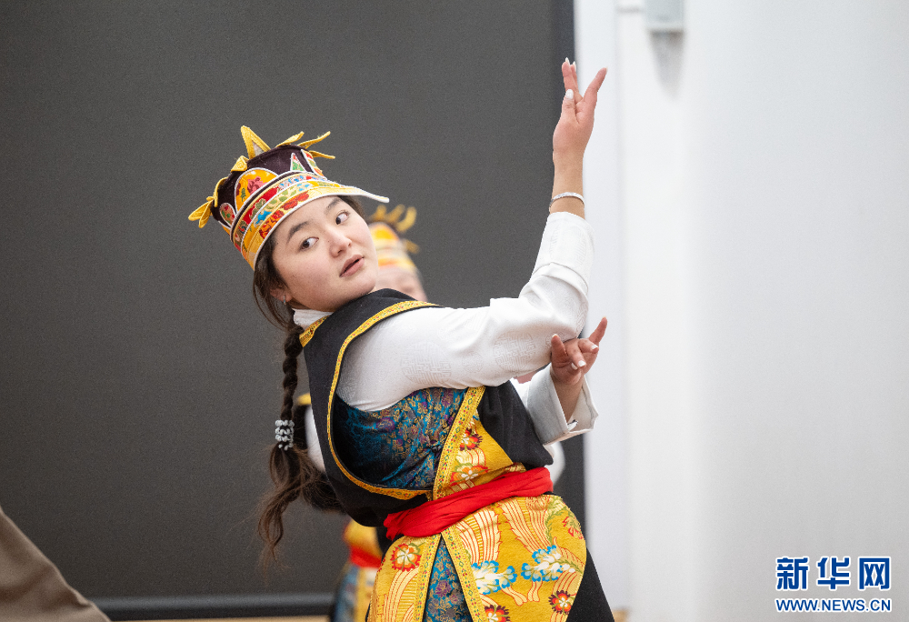 1月16日,社區(qū)文藝隊在表演節(jié)目。新華網(wǎng) 旦增努布 攝
