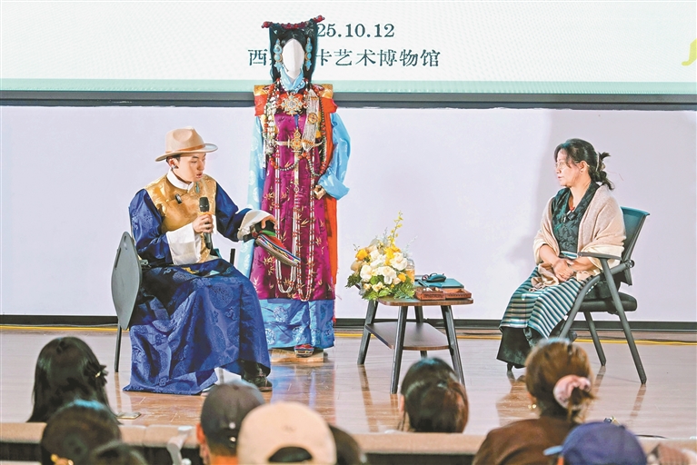 2025年10月,在西藏唐卡藝術(shù)博物館,班珠丹塔(左)與中國藏學(xué)研究中心的研究員次仁央宗合作主講《霓裳藏韻:衛(wèi)藏古典服飾里的文化、禮制與時(shí)代流變》。
