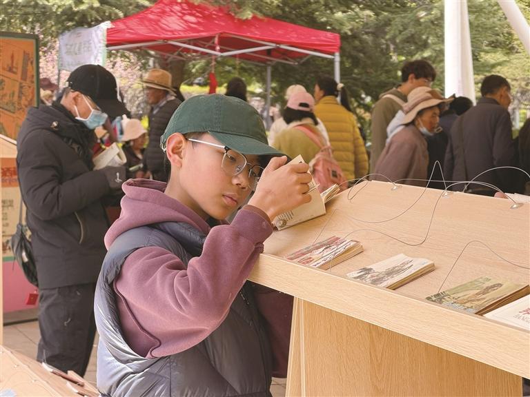 與開幕活動同步開展的圖書市集,匯聚了25個精品展位,涵蓋各類圖書、文創(chuàng)產(chǎn)品、非遺好物,琳瑯滿目,滿足了不同讀者的需求。此外,現(xiàn)場設(shè)置的“悅”讀電話亭、書店漂流計劃、無障礙閱讀體驗、繪本小屋、春日信箱等互動場景,兼顧了不同年齡、不同需求的讀者,讓每一位到場者都能找到心靈的棲息之所,沉浸式感受閱讀的樂趣。同期亮相的“方寸山河——連環(huán)畫中的西藏故事”“拉薩是一首詩——少兒詩歌繪畫融合展”兩大主題展覽,以圖文交織的形式,生動呈現(xiàn)了拉薩閱讀文化的傳承與展望,為書會增添了濃厚的文化氛圍。
