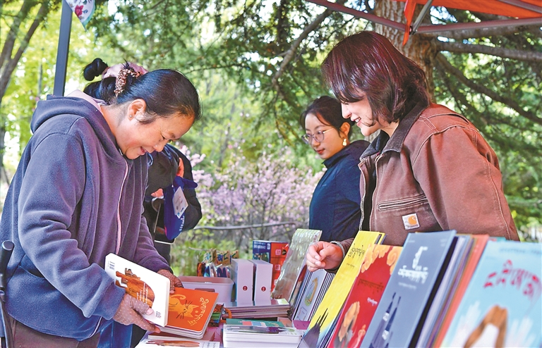 在第三屆“拉薩春日書會”暨拉薩市全民閱讀推廣周系列活動中,市民群眾在圖書市集選購書籍。記者 旦增蘭澤 攝