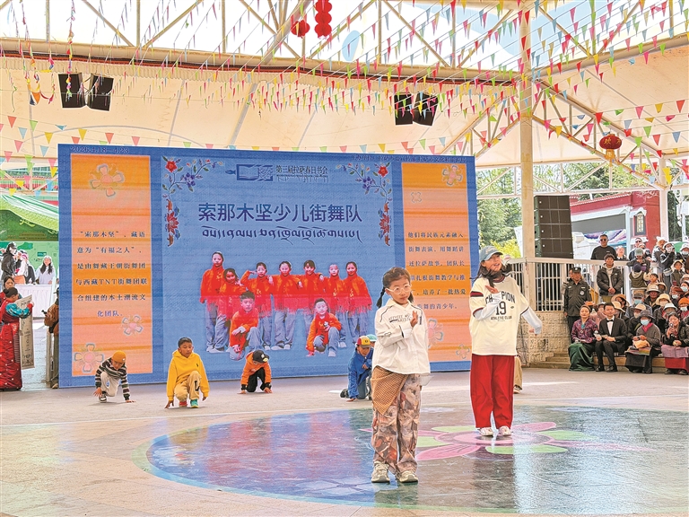 第三屆“拉薩春日書會”暨拉薩市全民閱讀推廣周系列活動開幕式現(xiàn)場的少兒街舞表演。 記者 曉勇 見習記者 權(quán)文娟 攝