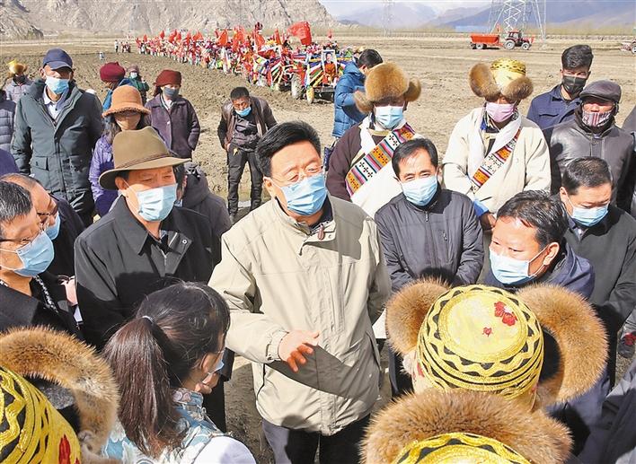 一年之計在于春。16日上午,西藏自治區(qū)黨委書記吳英杰和區(qū)黨委副書記、自治區(qū)人大常委會主任洛桑江村專程來到拉薩市曲水縣田間地頭、農(nóng)牧系統(tǒng)單位,與當?shù)馗刹咳罕娬勌厣a(chǎn)業(yè)經(jīng)、算增收致富賬,實地調(diào)研春耕春播工作情況。吳英杰強調(diào),要戰(zhàn)“疫”不誤農(nóng),始終堅持以人民為中心的發(fā)展思想,找準農(nóng)牧民增收致富的“切入點”,深入推進農(nóng)牧業(yè)供給側(cè)結(jié)構(gòu)性改革,確保農(nóng)牧民群眾不離鄉(xiāng)不離土就能依靠產(chǎn)業(yè)發(fā)展增收致富。