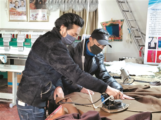 56歲的貢覺是烏瑪塘鄉(xiāng)郭尼村村民,因為腿部殘疾無法干重體力活,家里也沒有其他收入來源,后來布珠手把手教他縫紉技術(shù),他現(xiàn)在是合作社的一名縫紉工?!拔沂?017年來合作社的,現(xiàn)在每月工資有三千元,生活發(fā)生了很大的變化,一天比一天好了,在這里我學會了手工縫紉、機器縫紉等。”貢覺告訴記者,自己不僅僅解決了溫飽,更是學到了一門謀生的好手藝。