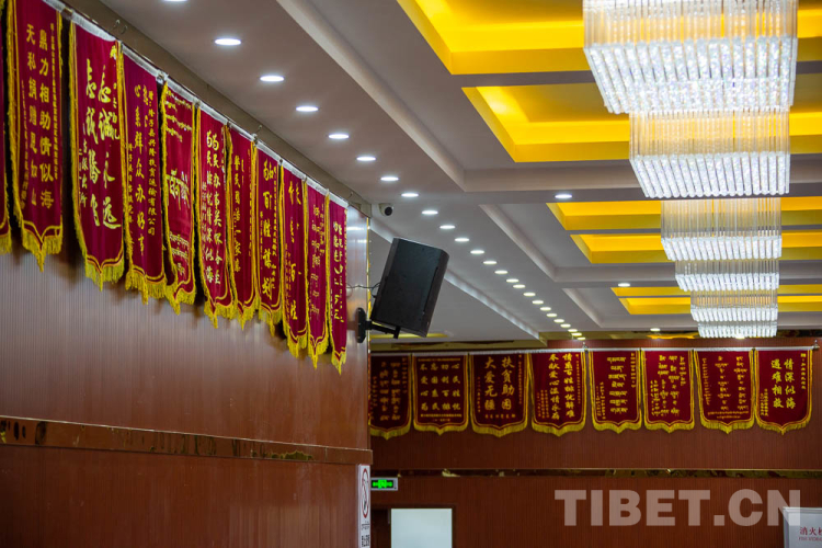 圖為隆子縣日當(dāng)鎮(zhèn)宗那建筑有限公司和興隆扶貧運(yùn)輸公司會議室里墻上掛滿的錦旗 攝影:趙耀