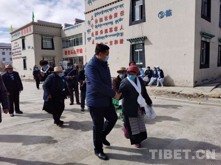 圖為隆子縣日當(dāng)鎮(zhèn)宗那建筑有限公司和興隆扶貧運(yùn)輸公司負(fù)責(zé)人加央曲扎慰問當(dāng)?shù)厝罕?圖片由隆子縣日當(dāng)鎮(zhèn)宗那建筑有限公司和興隆扶貧運(yùn)輸公司提供