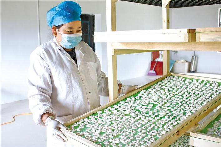 圖為尼瑪在林周縣德爾康農(nóng)畜農(nóng)民專業(yè)合作社制作奶渣。 記者 央金 攝