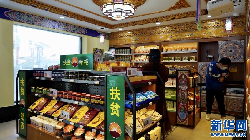 10月20日攝于拉薩功德林加油站內(nèi)的扶貧專柜。新華網(wǎng) 達(dá)珍攝