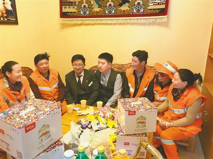 農(nóng)行康昂東路支行員工關(guān)心關(guān)愛環(huán)衛(wèi)工人。