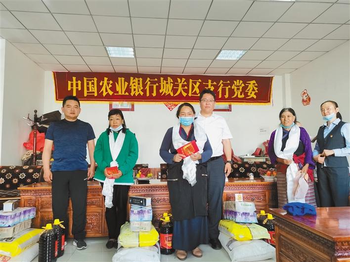 農(nóng)行城關(guān)區(qū)支行與木如居委會貧困戶開展結(jié)對幫扶,并為他們送去了慰問品和慰問金。