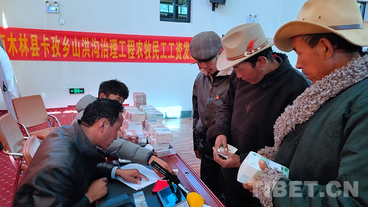 圖為西藏自治區(qū)日喀則市南木林縣卡孜鄉(xiāng)山洪溝治理工程項(xiàng)目民工工資發(fā)放暨勞務(wù)合作社分紅儀式現(xiàn)場(chǎng)