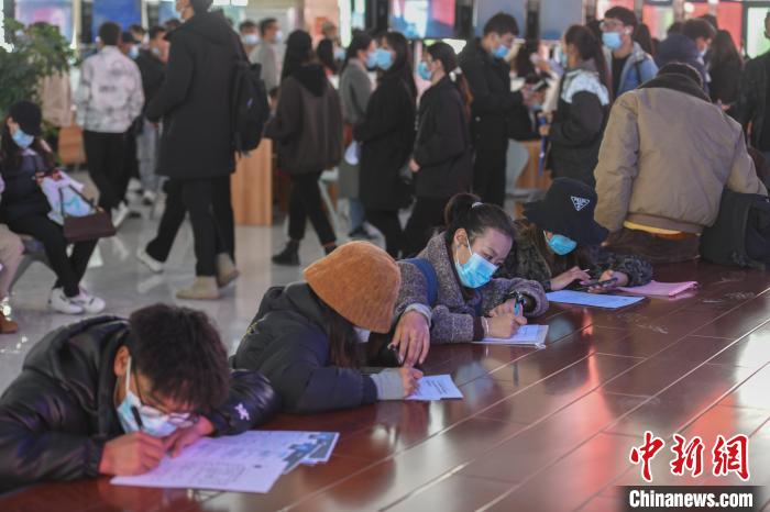 求職者在招聘會(huì)上填寫個(gè)人信息。 貢嘎來(lái)松 攝