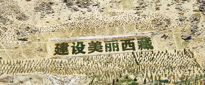 在柳梧大橋附近公路旁的一座山上,一排由綠樹組成的“建設(shè)美麗西藏”幾個大字讓人眼前一亮。“這就是我們公司設(shè)計完成的,花費了我們很多心血,也因為這一單業(yè)務(wù)的成功,我們公司在市場上得到了認(rèn)可?!备裆K苤钢鴰讉€大字高興地說。