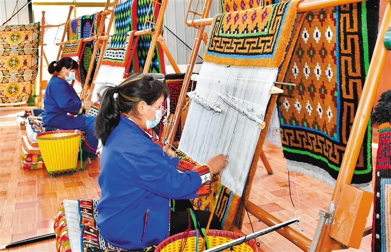圖為山南市嘩嘰手工編織專業(yè)合作社工作人員在制作藏毯。記者 唐斌 攝