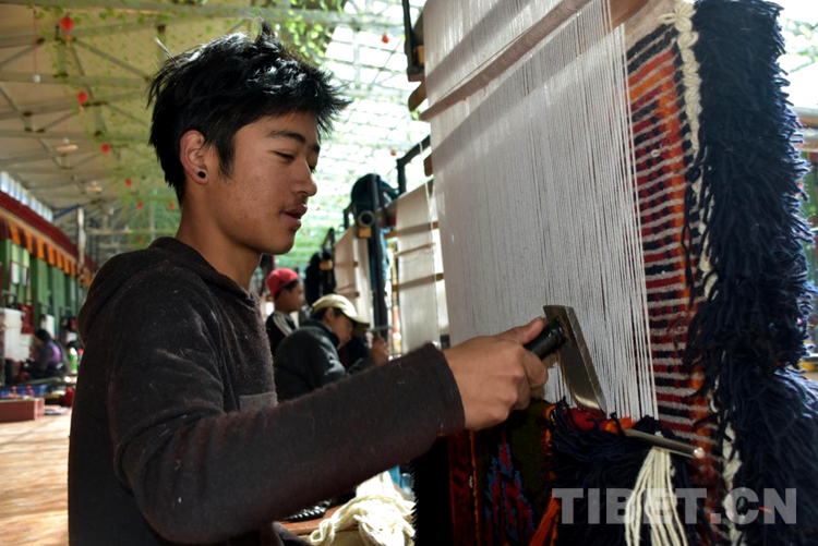 “剛到合作社每天工資160元,一個(gè)月下來(lái)就有小四千,一年收入妥妥的超3萬(wàn)元。”說(shuō)話間,巴頓也沒(méi)有歇下手中的活計(jì)。穿桿結(jié)扣,勤勞的雙手一直忙碌著,在合作社6年多,他已經(jīng)比較熟練地掌握了卡墊織法、色彩以及紋樣。如今,卡墊接活都是以承包方式,往往供不應(yīng)求,一家人住在裝修一新的藏式小院里,妻子現(xiàn)在也在參加合作社新員工培訓(xùn),四個(gè)孩子都進(jìn)了公立學(xué)校讀書,享受了義務(wù)教育免費(fèi)“三包”政策。