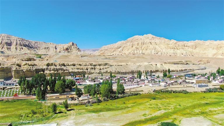 旭日初升,金黃的陽(yáng)光遍灑這座幸福村落,村民們迎著朝陽(yáng),又開始了一天忙中有序的生活,遠(yuǎn)處赫然矗立的古格王國(guó)遺址默默注視,見證著這里的華麗蝶變。