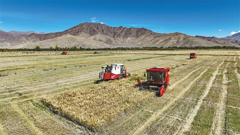 日喀則市素有“西藏糧倉”的美譽,西藏一多半的青稞都產(chǎn)自這里。9月的日喀則,青稞飄香,各縣區(qū)全面進入秋收,廣大農(nóng)牧民搶抓有利時機,在田間地頭忙碌。目前全市收割面積已達74萬余畝,秋收進度與往年基本一致。