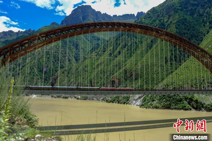 圖為一列火車經(jīng)過西藏雅魯藏布江藏木大橋?!〗w波 攝