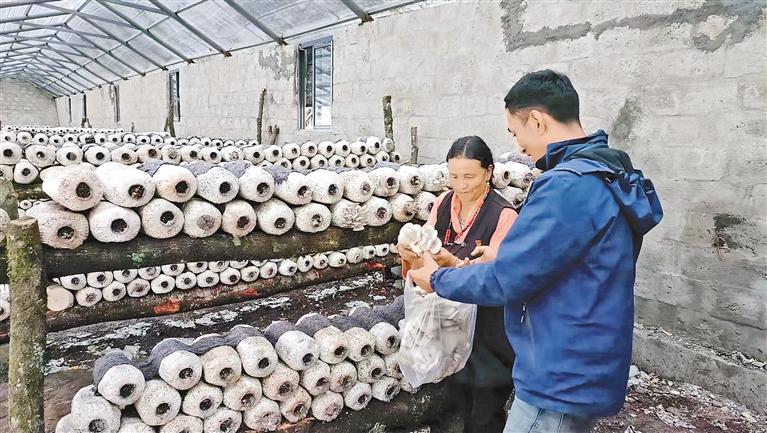 圖為莎列村村民采摘平菇。 記者 次吉 攝