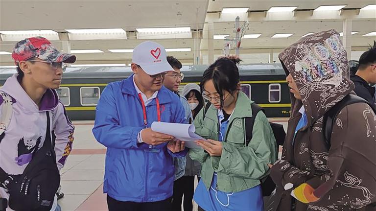 “到西部去、到基層去、到祖國和人民最需要的地方去?!?月24日,2023屆大學生西部計劃西藏專項志愿者陸續(xù)抵藏報到?,F(xiàn)場,共青團西藏自治區(qū)委員會組織了前幾屆志愿者在火車站接站。“我是從河南過來做志愿者的,在西藏已經2年了,一直在自治區(qū)經信廳上班。今天是過來接學弟學妹們的,幫助他們登記報到。”韓義凡說。中午11點左右,火車進站,志愿者們陸續(xù)前來報到?!斑@是我第一次來西藏,還是以志愿者的身份,我會好好工作,為西藏的發(fā)展作出自己的貢獻?!眮碜蕴旖虻奶锟苏f。