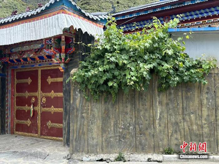 嘎拉村距林芝市城區(qū)僅12公里,沿著318國道驅(qū)車行至此,映入眼簾的就是干凈整潔的道路。雖沒有趕上桃花季,但7月的嘎拉村瓜果飄香,村里面隨處可見到結(jié)滿果實的櫻桃樹、李子樹、葡萄藤等。