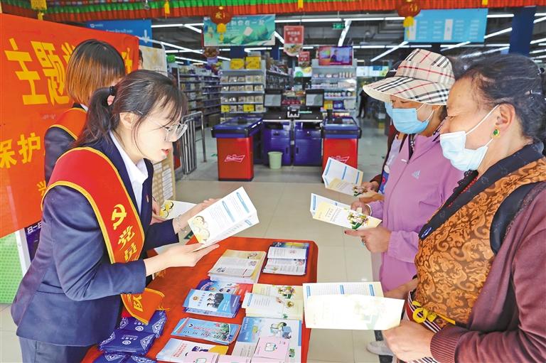 圖為興業(yè)銀行拉薩分行志愿者開(kāi)展金融知識(shí)宣傳。