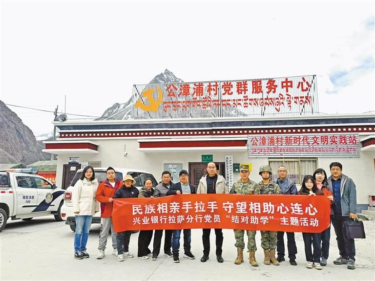 圖為興業(yè)銀行拉薩分行開(kāi)展黨員“結(jié)對(duì)助學(xué)”主題活動(dòng)時(shí)的合影。