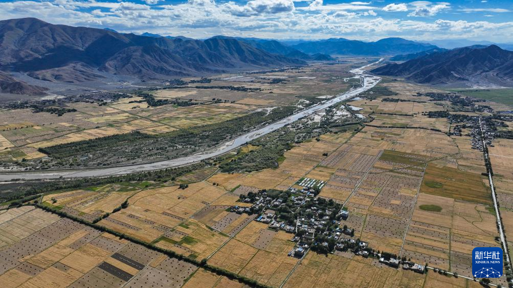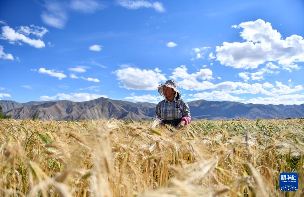 西藏日喀則市年楚河流域是西藏糧食的主產(chǎn)區(qū)之一,今年雨水豐沛,糧食長勢喜人,大地鋪金,農(nóng)民喜迎豐收。