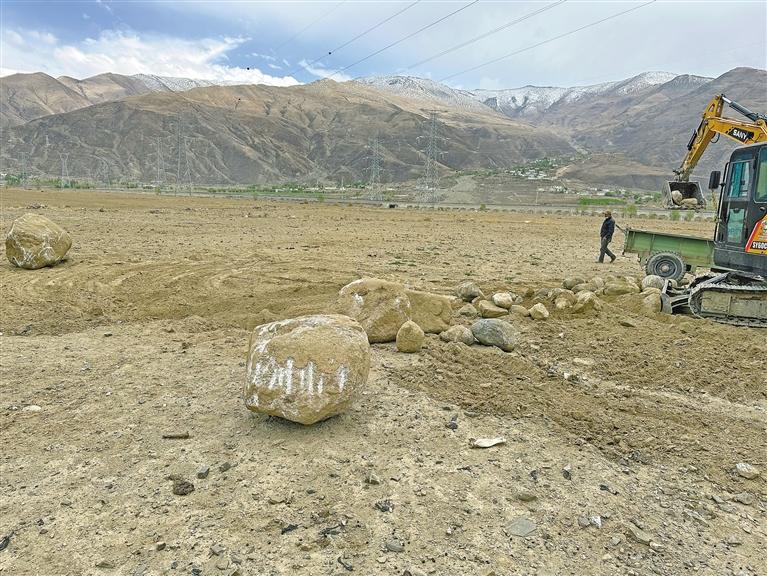洛珠達(dá)瓦打開手機(jī)中的相冊,他指著挖石頭的視頻說:“雅魯藏布江沿岸土地中的石頭太多了,有些石頭重達(dá)幾噸,根本無法種植任何農(nóng)作物。為了撿石頭、挖石頭,我們每天從村里雇10多個人來干活?!?/p>