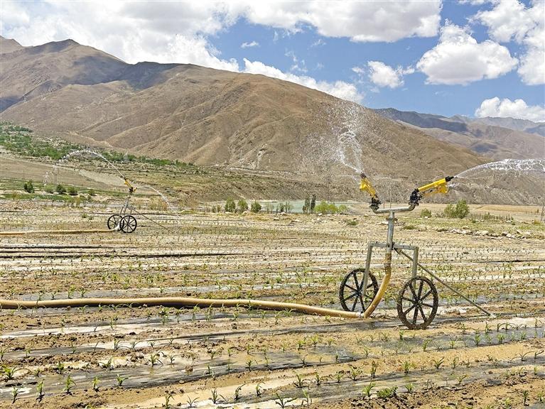 次仁頓珠是西藏曲水藏禾農(nóng)業(yè)綜合開發(fā)有限公司的一名工作人員。他說,剛開始澆灌土地時,他們直接從雅魯藏布江抽水,不過到了雨季,抽水泵都被大水沖走了,他們不得不另想辦法,從村中的地下機(jī)井抽水到溝渠,直接將水引到田間地頭。
