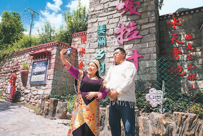 村民巴珍家的藏式小樓,院內(nèi)鮮花簇簇、室內(nèi)溫暖如春,二樓的3個房間租給旅游企業(yè)用作客房?!耙荒攴孔馐杖胗?萬多元,我在旅游公司打工,月工資4000多元,一年收入七八萬元,關(guān)鍵是工作生活都在自己村里,簡直是太方便了?!卑驼浜軡M意現(xiàn)在的生活。旦增達杰介紹,光房屋租金一項,村民戶均年增收3萬多元。