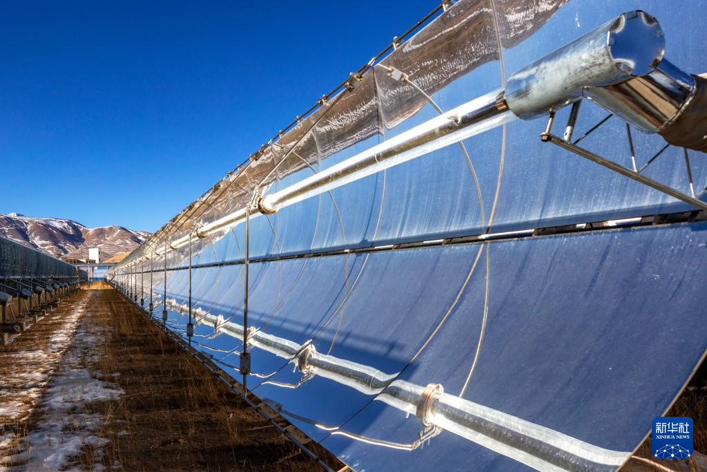 這是申扎縣城集中供暖項(xiàng)目太陽(yáng)能集熱場(chǎng)局部(1月6日攝)。新華社記者 曹檳 攝