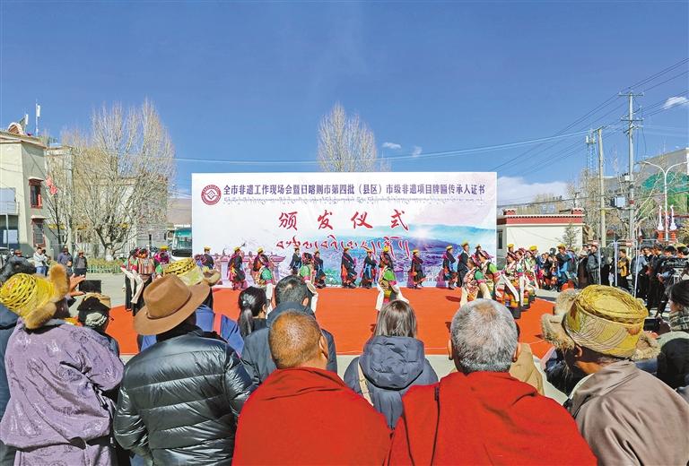 近日,日喀則市非遺工作現(xiàn)場會(huì)暨日喀則市第四批(縣區(qū))市級(jí)非遺項(xiàng)目牌匾傳承人證書頒發(fā)儀式在拉孜縣召開,現(xiàn)場頒發(fā)了第四批非物質(zhì)文化遺產(chǎn)代表性項(xiàng)目牌匾、第四批非物質(zhì)文化遺產(chǎn)代表性傳承人證書、日喀則市級(jí)非遺旅游景區(qū)牌匾。