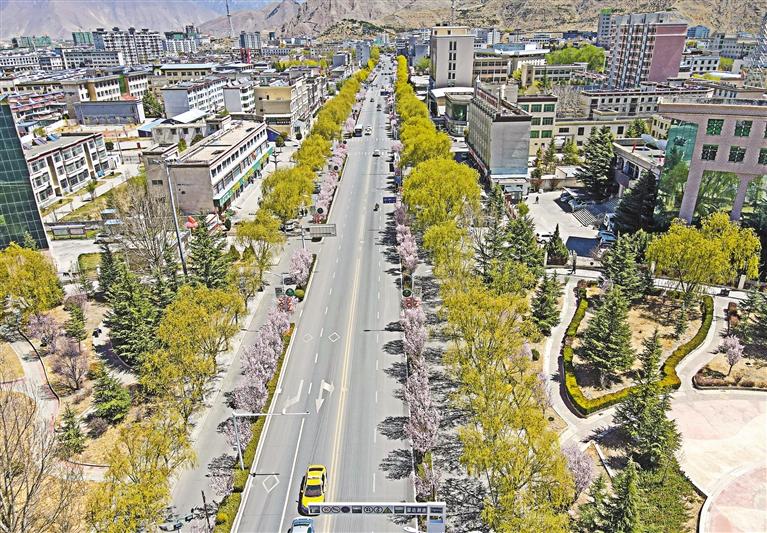 圖為環(huán)境優(yōu)美的山南市澤當(dāng)主城區(qū)一角。記者 劉楓 攝