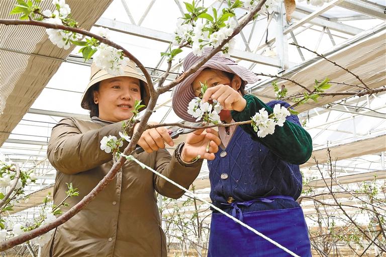 圖為尼木縣“點對點”干部德吉(左一)向群眾傳授車厘子種植技術(shù)。(圖片由中共尼木縣委宣傳部提供)