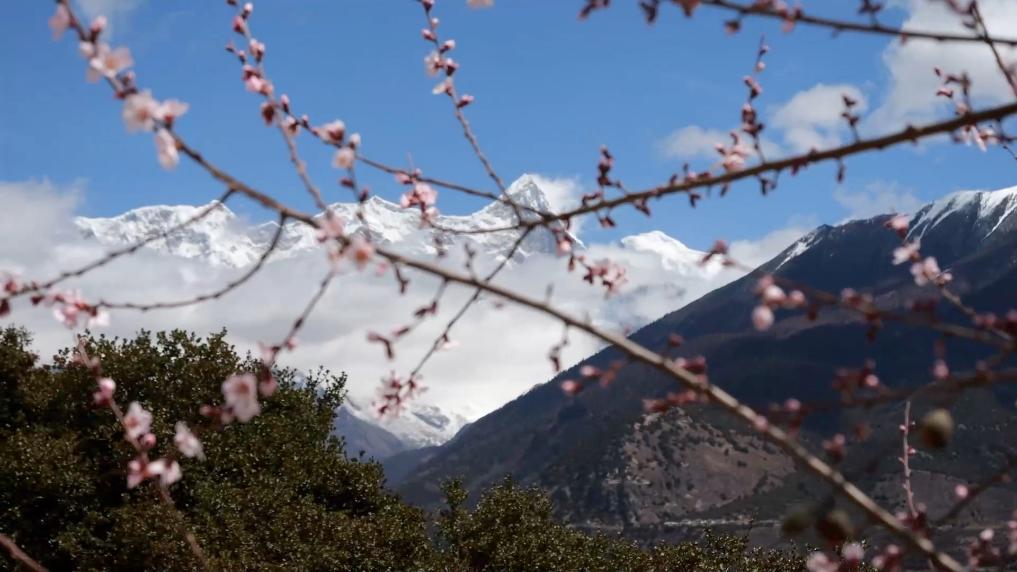 西藏林芝的山林之中,桃花如云霞般綻放,一片芳菲景象中,新一年的生機與繁榮正在孕育。