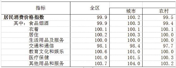 全年全區(qū)居民消費(fèi)價(jià)格比上年下降0.1%,工業(yè)生產(chǎn)者出廠價(jià)格上漲1.1%。