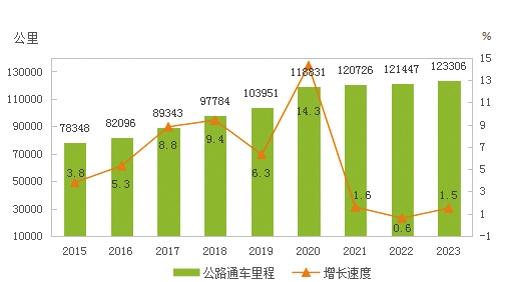 圖8 2015-2023年公路通車(chē)?yán)锍碳捌湓鲩L(zhǎng)速度