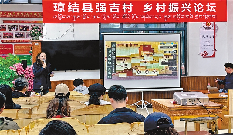 圖為瓊結(jié)縣在拉玉鄉(xiāng)強吉村“黨群小茶館”服務(wù)平臺舉辦鄉(xiāng)村振興論壇。記者 汪純 攝