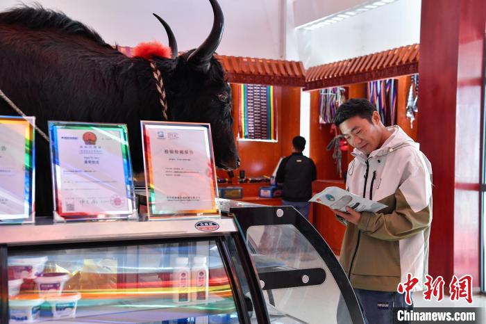 10月25日,西藏自治區(qū)那曲市聶榮縣,畜產(chǎn)品深加工產(chǎn)業(yè)正成為帶動(dòng)牧民增收致富的新引擎。圖為游客參觀嘎確生態(tài)畜牧業(yè)發(fā)展有限責(zé)任公司產(chǎn)品展示區(qū)。中新社記者 貢嘎來松 攝