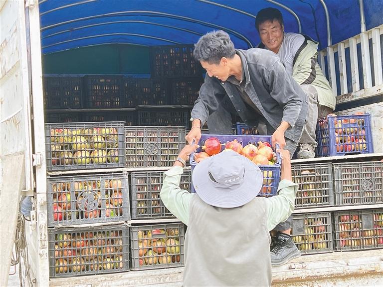 圖為昌西村果農(nóng)將石榴裝車,準(zhǔn)備外運(yùn)銷售。記者 劉楓 通訊員 吳子偉 攝