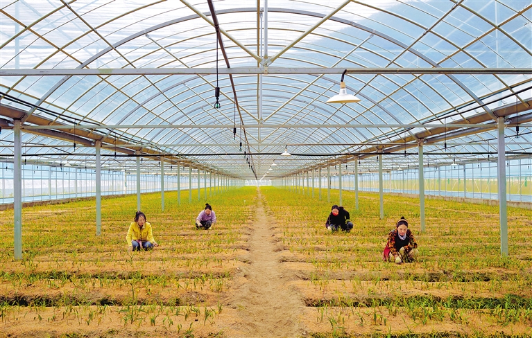 圖為米林市幫仲貝母種植基地的員工在檢查貝母長勢。記者 丹增群培 攝