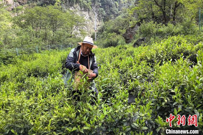 圖為2024年5月20日,格桑旦增在茶田采摘茶青。受訪(fǎng)者 供圖